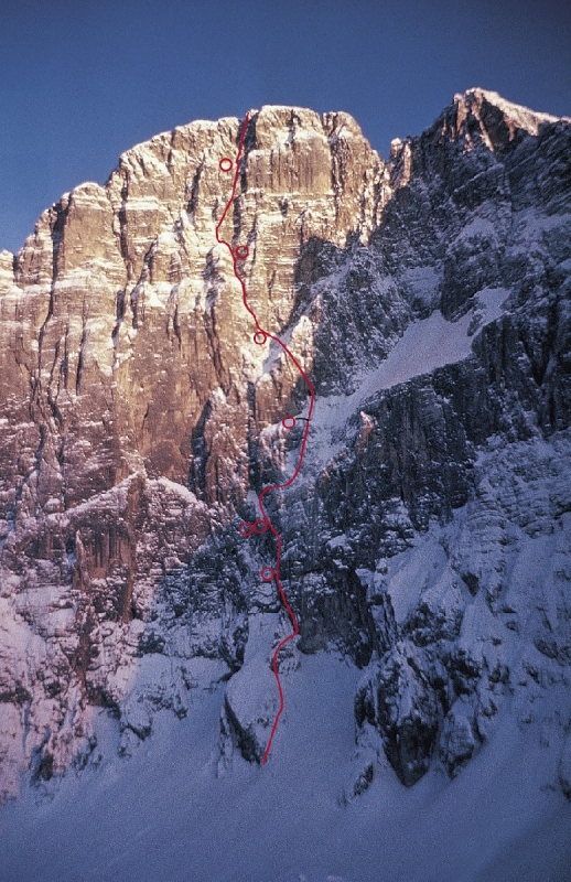 Prima salita invernale della via Solleder al Civetta